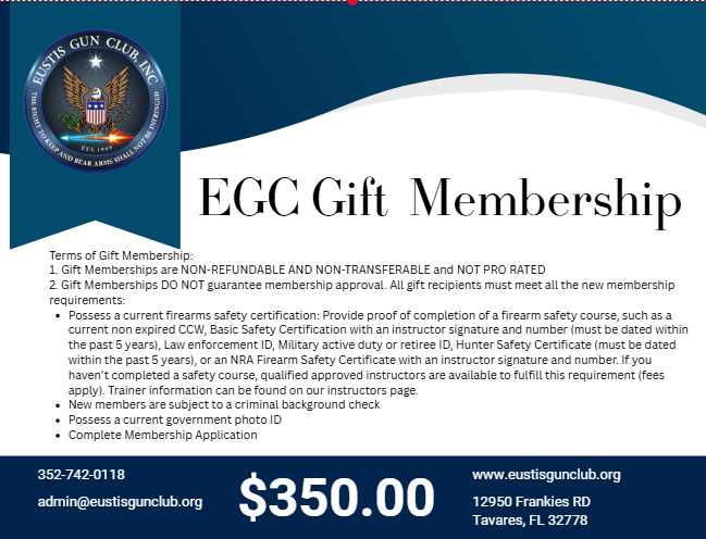 Giftee must new membership procedure and orientation before accessing any EGC range facilities.